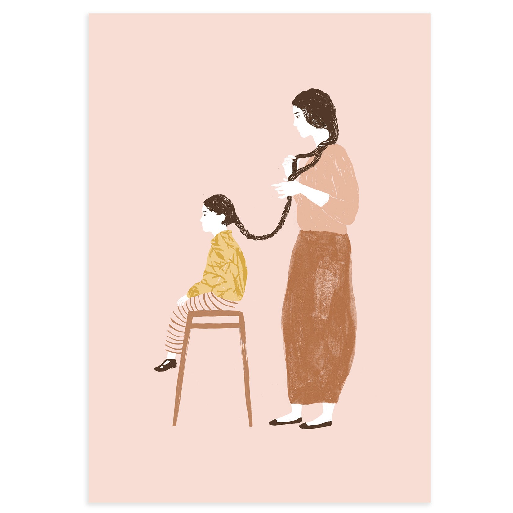 Una unión de por vida, entre una madre y una hija, entre una hermana mayor y otra pequeña. Cuánto sentimiento, cuánta verdad hay en esta pieza, tantas razones para separarse nunca. Esta serigrafía de la artista italiana Elisa Talentino está impresa en papel Favini Crush Citrus, una gama ecológica elaborada con subproductos de procesos agroindustriales que sustituyen hasta un 15% de la celulosa de los árboles. Los residuos de cítricos, coco, cacao, uvas, cerezas, lavanda, maíz, aceitunas, café, kiwi, avellanas y almendras son las materias primas naturales que, en lugar de eliminarse como residuos, son tratados y añadidos al papel en el lugar de celulosa.