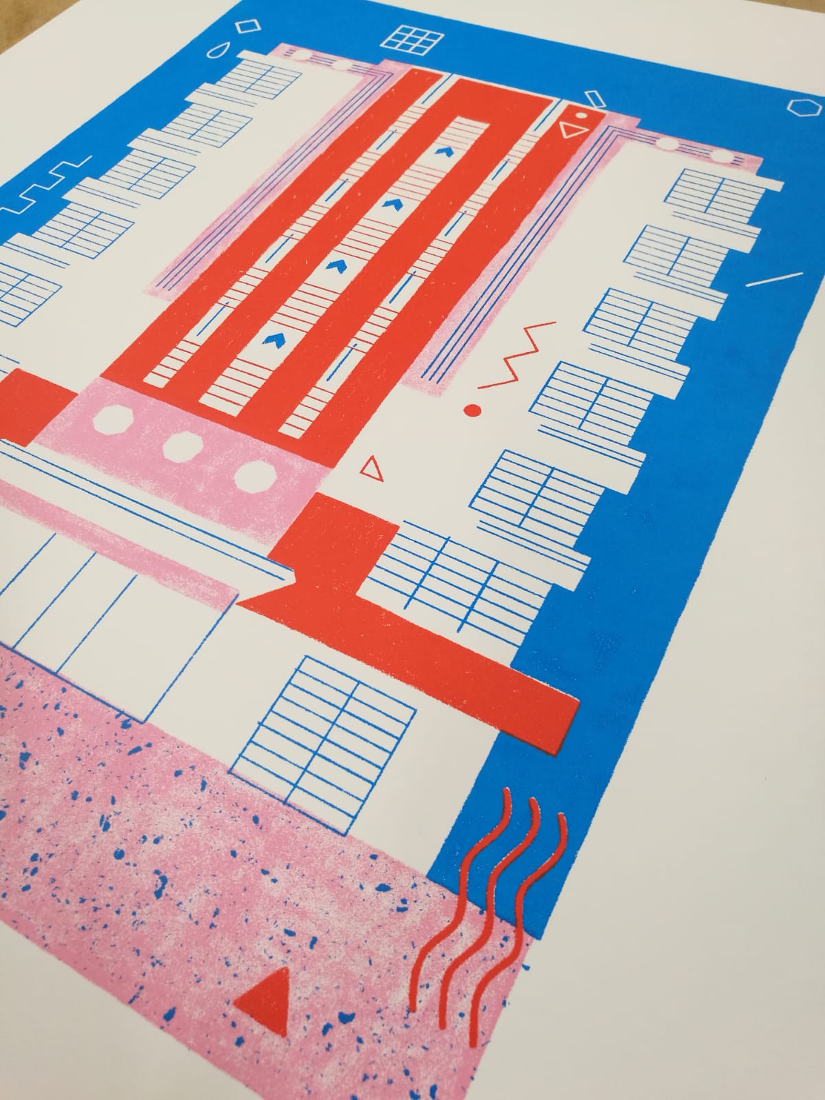Serigrafía a 3 tintas sobre papel Bristol Ultrawhite de 640 g.