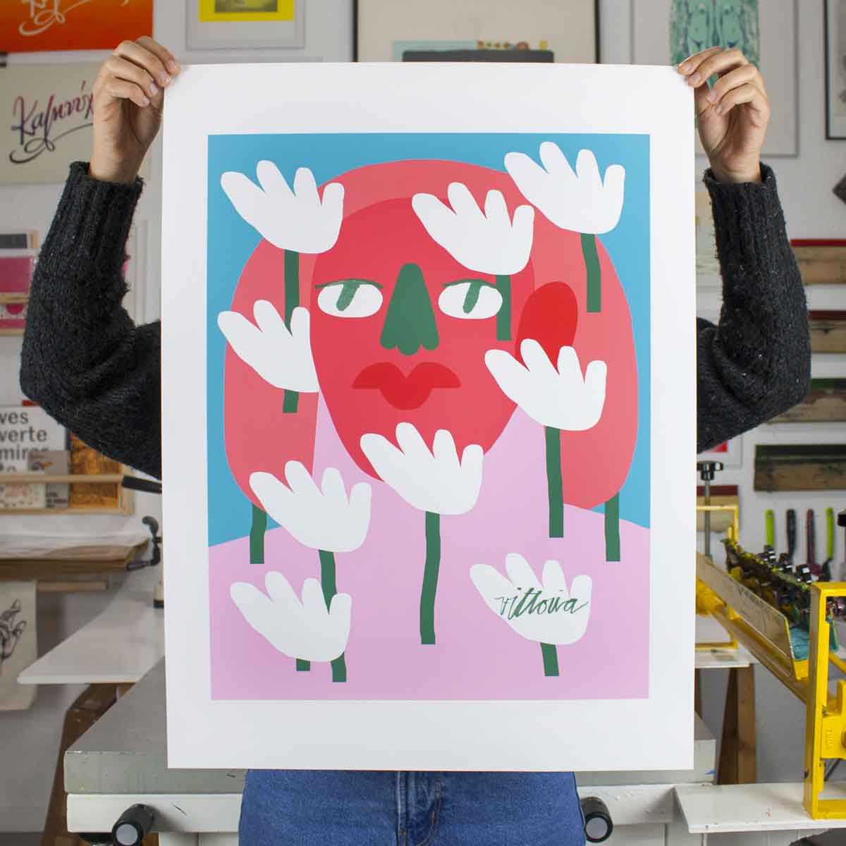 Silk screen 5 inks on Bristol Ultrawhite 640 g paper.