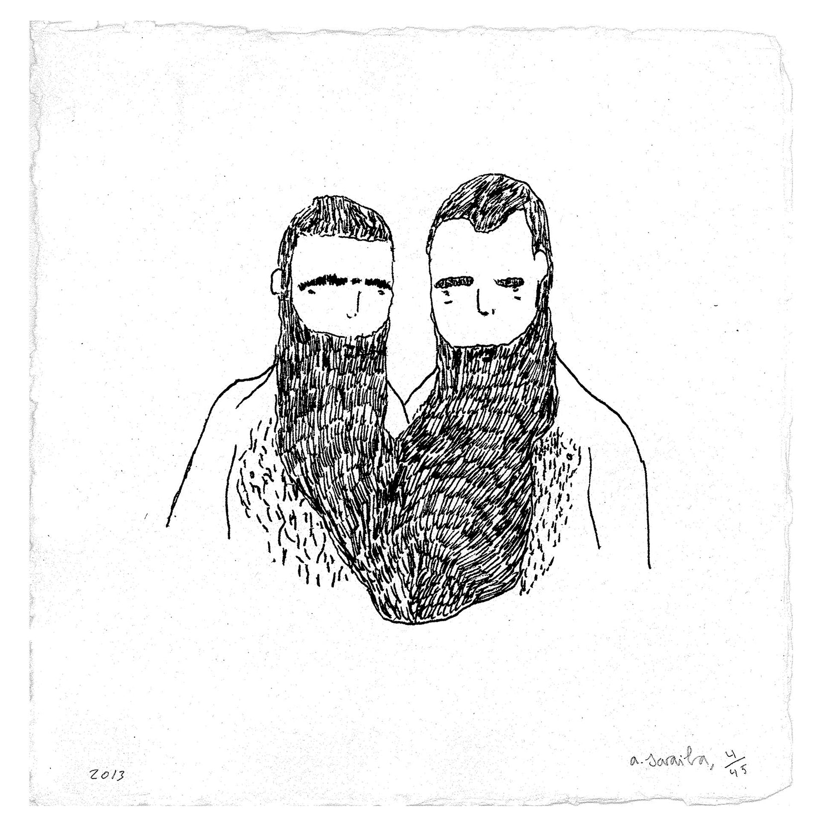 Love. Always love. Whoever knows the works of Aitor Saraiba well knows that this evil or this human gift constantly appears and disappears in his work. A thousand ways, with a thousand resources. This is the silk screen series of one of his now classic drawings which he tells us “talks about two people that love each other and don't know it”. And meanwhile, the folds of hair intertwine, perhaps without the two protagonists knowing it, because at times it isn't known how to keep love alive.