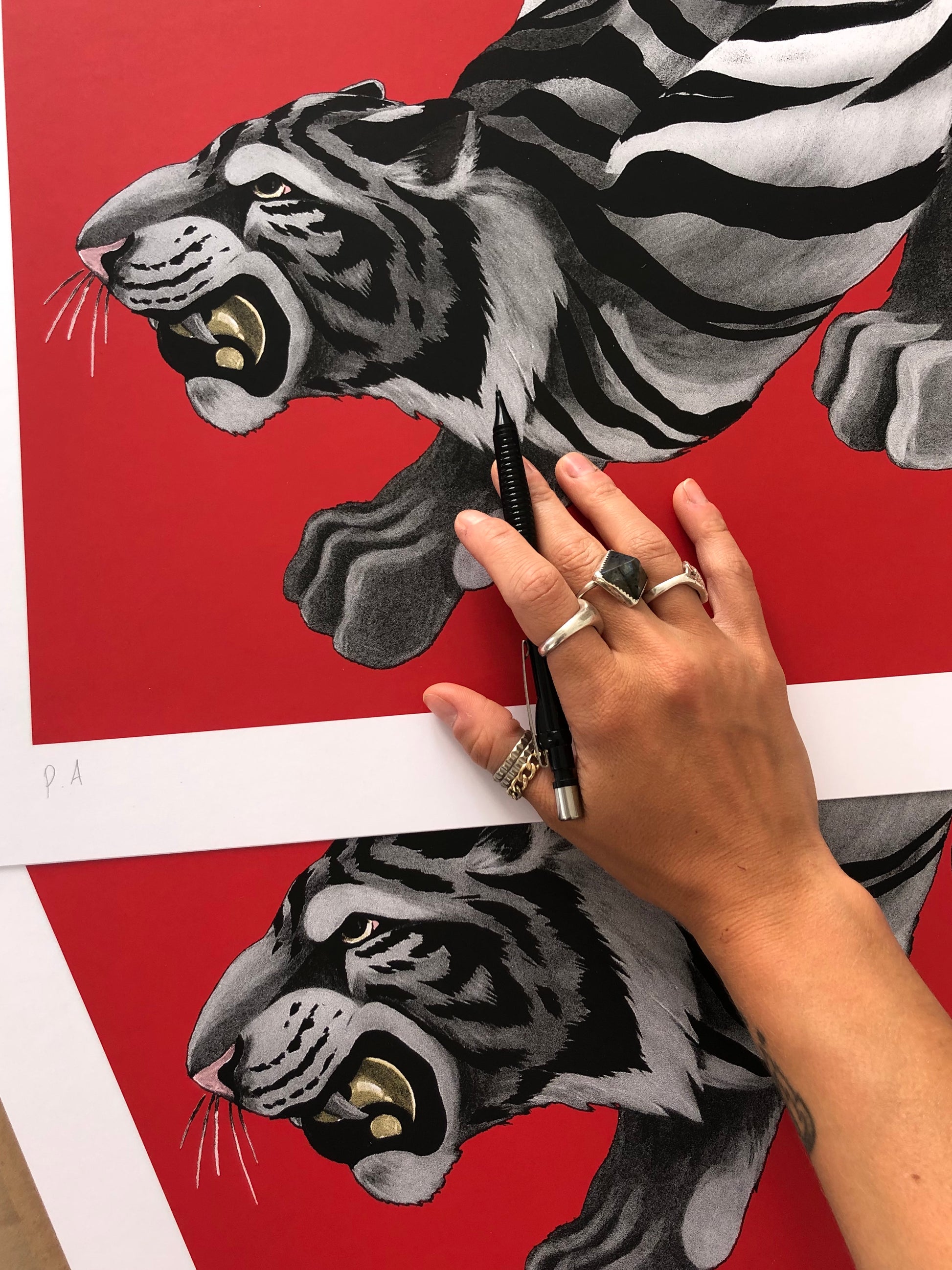 Byakko is a white tiger of Japanese folklore that symbolizes the western winds brought by the autumn storms, and the artist Mercedes Bellido, with this artwork, has wanted to pay it a tribute. "It is one of the four mythological monsters that represents the four cardinal points and it is a symbol of lightning and air," says the creator about this piece that talks about strength, Japanese culture and good luck.