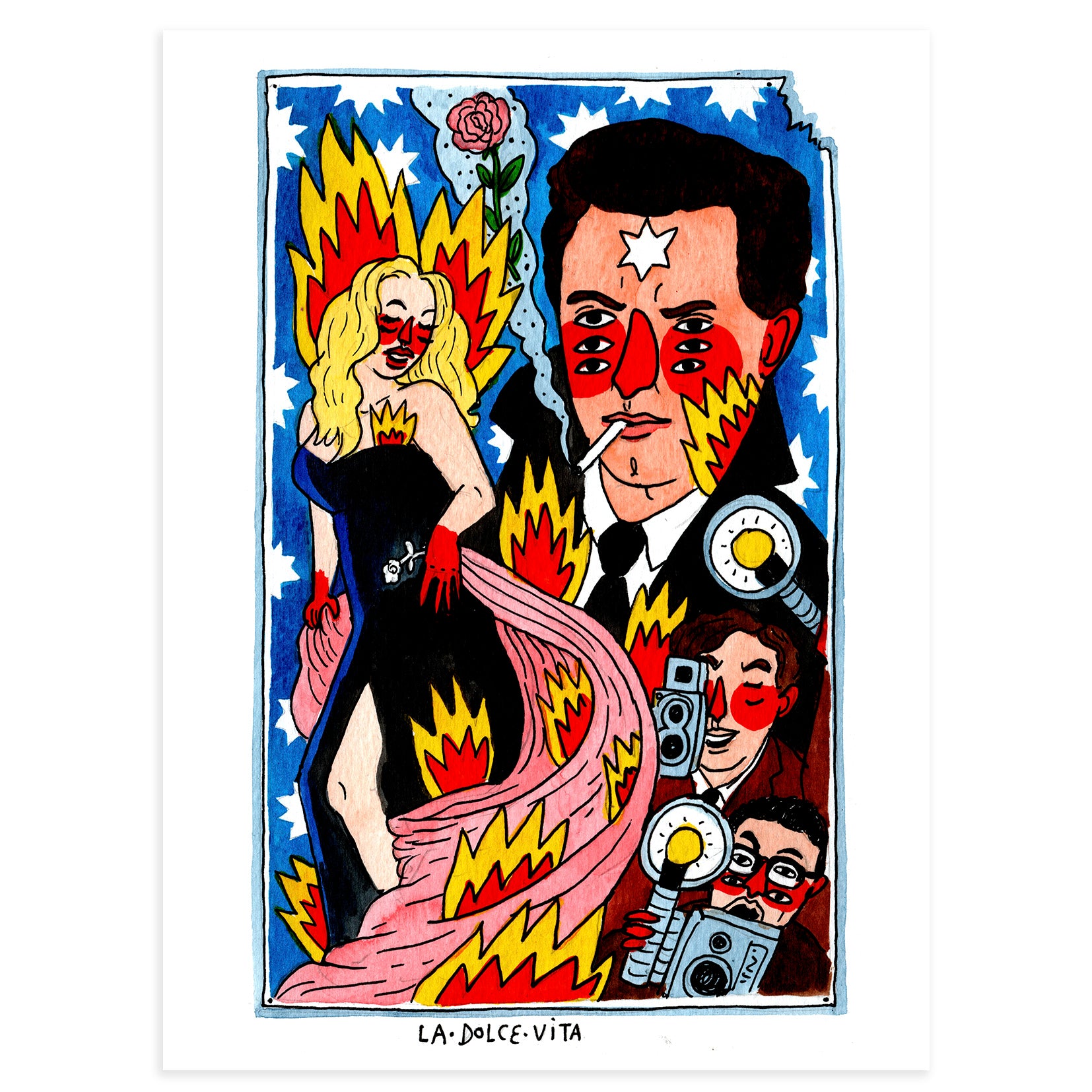 A whole country, Italy, can be portraited not only in a movie like 'La Dolce Vita' (1960), but also within an artwork by Ricardo Cavolo, like this one. This limited edition series belongs to his book 100 películas sin las que no podría vivir (Lunwerg) and was part of the collection produced by Artgoritmo. "Italians love life and enjoy it, they live in a controlled decadence but having fun[...]. We can see the hand of Marcello Mastroianni in the movie, the nightlife in the always perfect Roman streets, each film plane is a wonderful photograph and, at the same time, a lesson in style and timeless elegance".