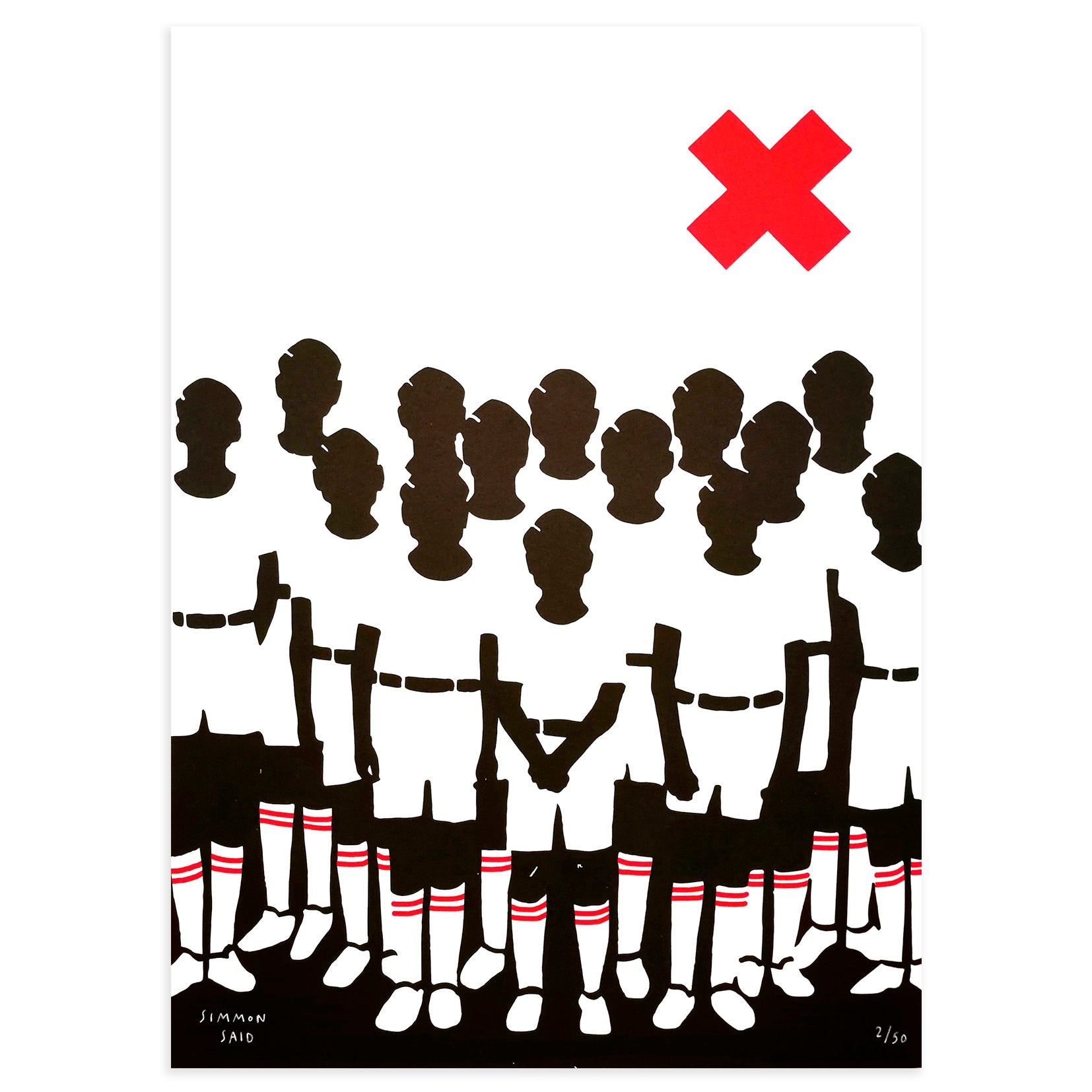 A group of young, uniformed child like those who appeared in the Rossellini or Vitorio de Sica films. The artist Simmon Said speaks in this limited edition silkscreen of another of his big obsessions: uniforms. "I've always liked group photographs, especially those made in uniform schools. I was one of those child. I play to guess how is the personality and life of these anonymous children. I enjoy creating stories. We are born with the desire to live, until we discover what is the fear of being yourself, then we look at the rest. We make ours the thoughts of others without rebellion, we become soldiers of an invisible army, well uniformed and sufficiently depersonalized to blur any criteria of our own. We let ourselves be molded by the light of a single-minded sun succumbing to the desperate need to fit in. We miss the opportunity to vindicate ourselves in a world as hostile as a true verse loose in that shadow club. Who will be the brave?".