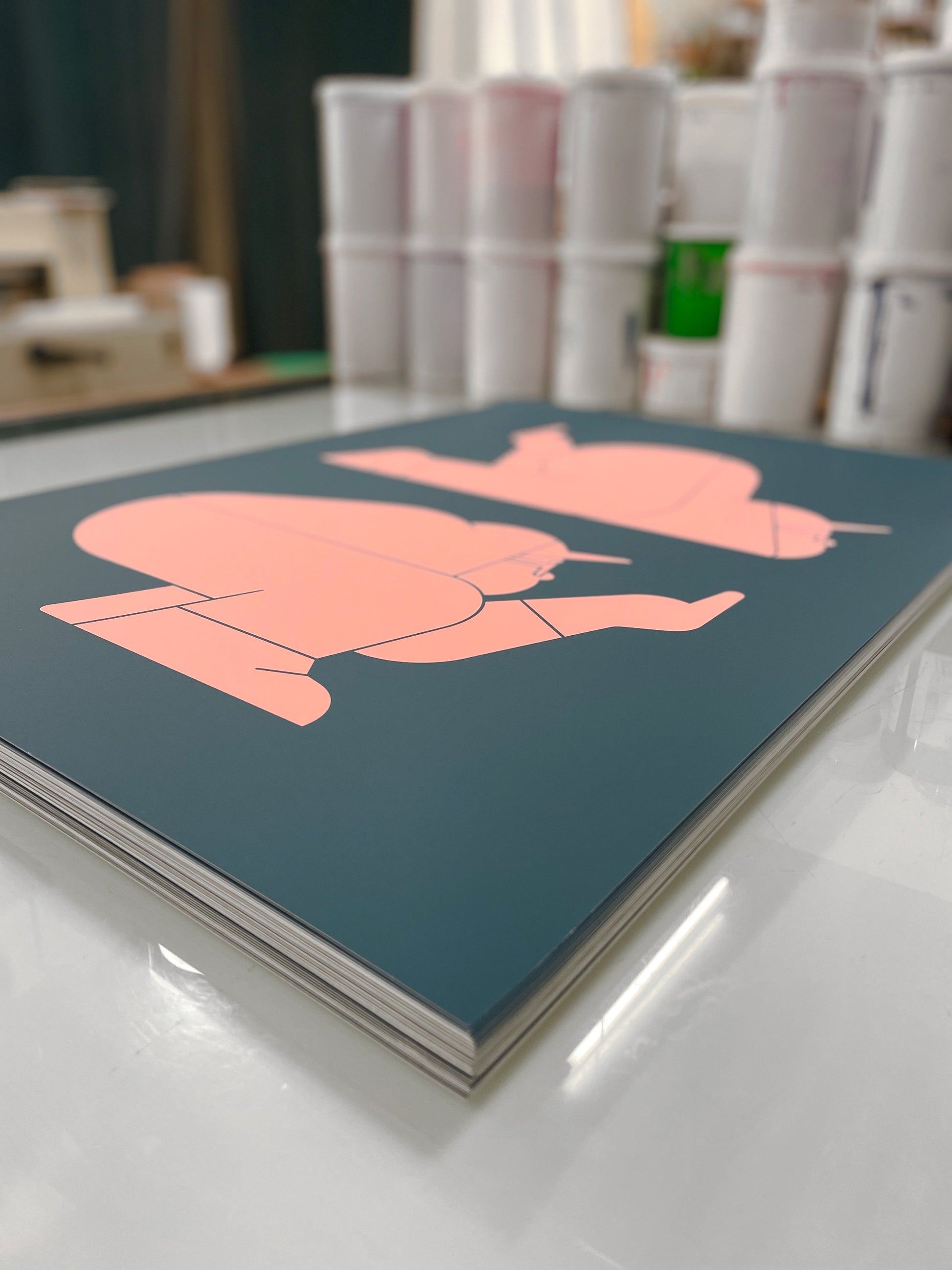 This artwork shows a balanced composition of two colors and two defined figures that speak of space. There's no excess, no saturation, only subtlety and balanced tension. A limited edition that speaks of emotional silences, introspection, whispers...