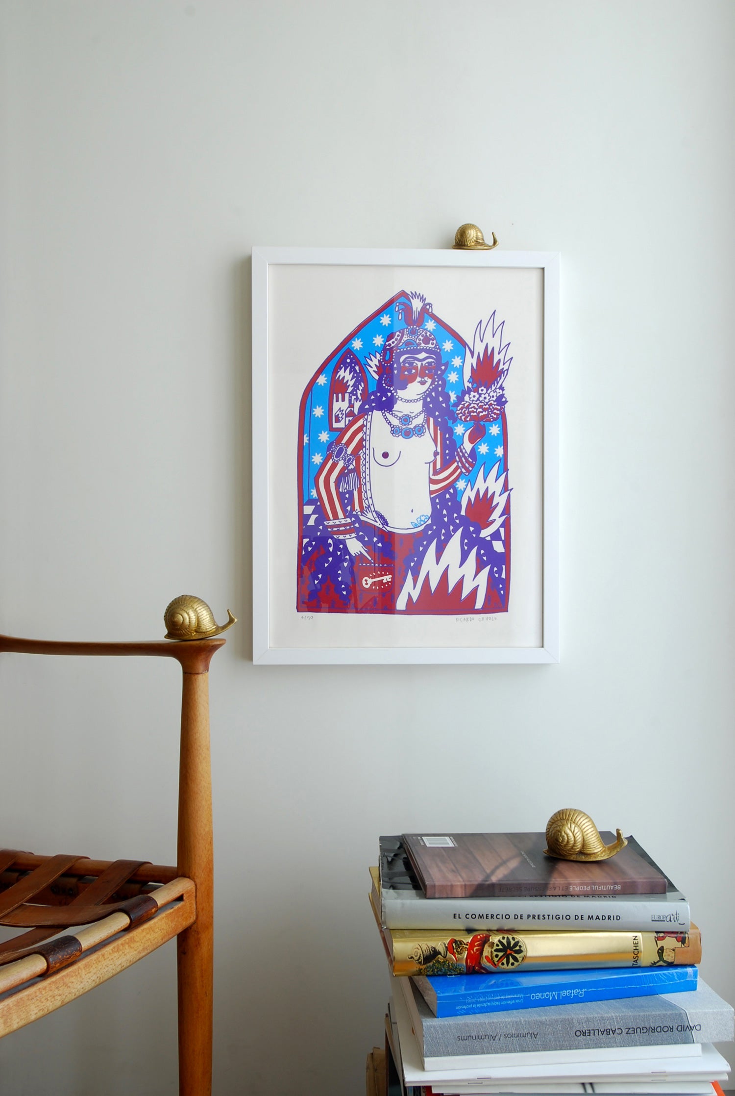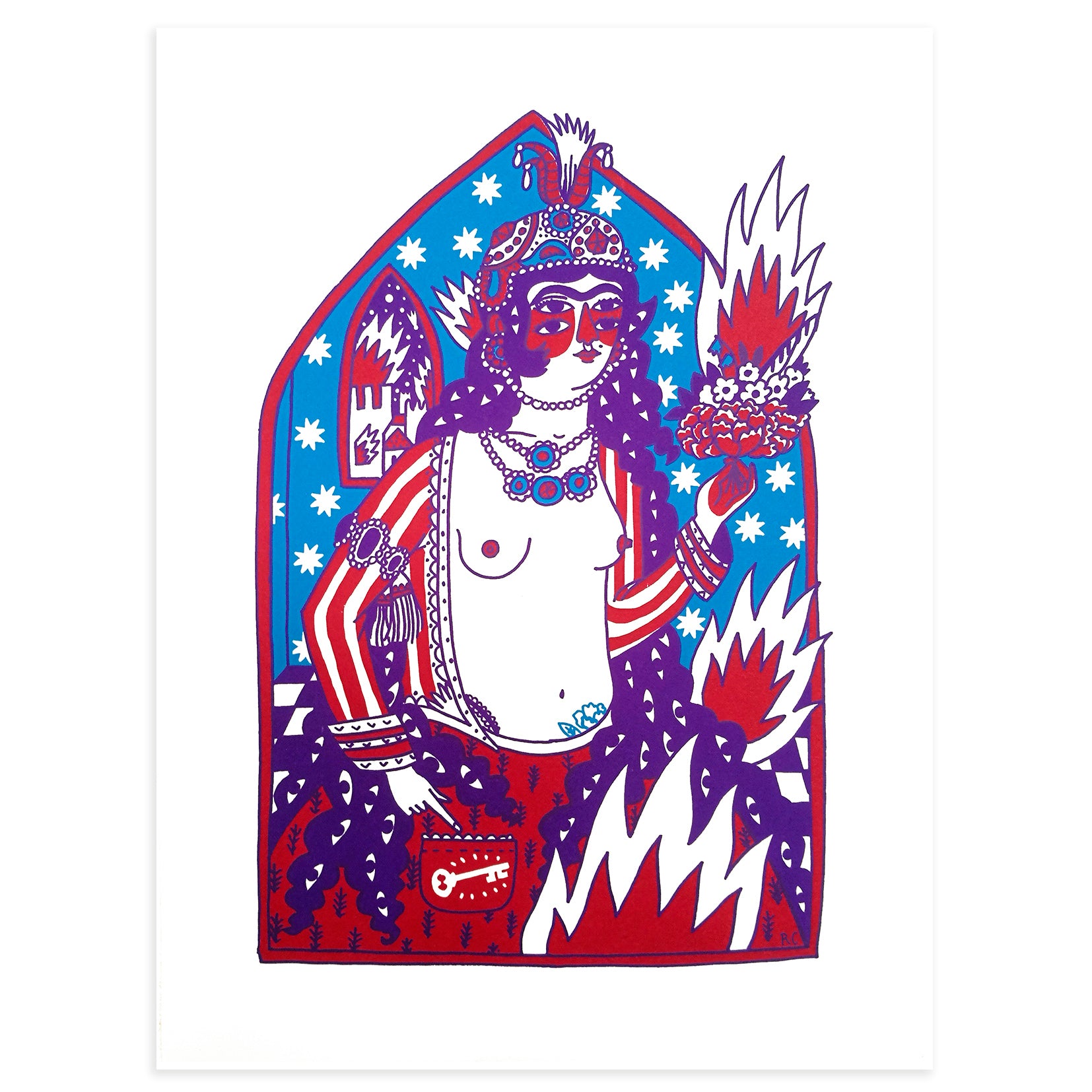 From 1785 to 1925 the Qajar dynasty, a family of Iranian origin, governed Persia. An unique years where art took over the streets and this eastern region shone for its open and contemporary character. With this artwork, the artist Ricardo Cavolo wants to homage that line of philanthropic leaders. "A painting with a strong modern character was developed in a very religious country, it is a unique spark in the History of Art". And that’s how Mahtab is born, an independent woman, delighted with art, with change, who lives free in a place where creativity is rewarded. Mahtab represents all those heroines who walked with their powerful creativity through the Persia of the eighteenth century.