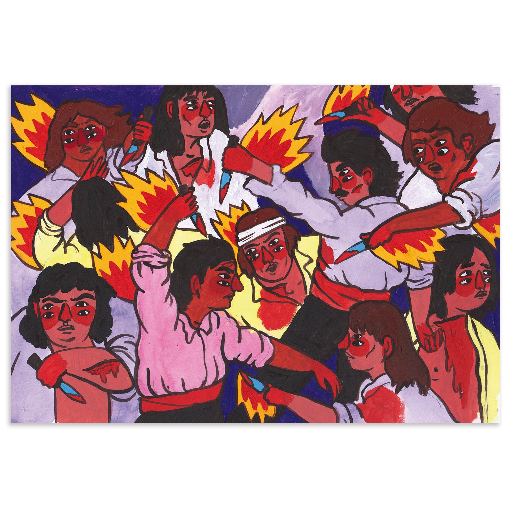 Two of our favourite persons, Ricardo Cavolo and Federico García Lorca, came together in the illustrated version of the Granada-born author's collection of poems, in 2020. García Lorca's immortal poems from 'Romancero Gitano' came to life in pages overflowing with colours and symbols. In this book, the poet's verses were amplified by the hand of Cavolo's universe, giving meaning to an editorial milestone around one of the most significant lyrical creations of the 20th century. This original artwork belongs to that picture book, that was an artistic reflection by Cavolo on this masterpiece of Spanish literature.