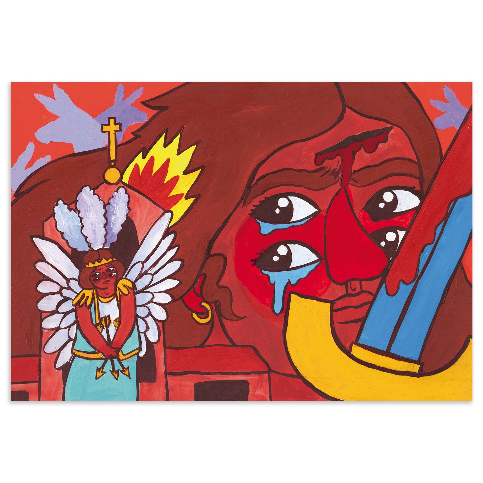 Two of our favourite persons, Ricardo Cavolo and Federico García Lorca, came together in the illustrated version of the Granada-born author's collection of poems, in 2020. García Lorca's immortal poems from 'Romancero Gitano' came to life in pages overflowing with colours and symbols. In this book, the poet's verses were amplified by the hand of Cavolo's universe, giving meaning to an editorial milestone around one of the most significant lyrical creations of the 20th century. This original artwork belongs to that picture book, that was an artistic reflection by Cavolo on this masterpiece of Spanish literature.