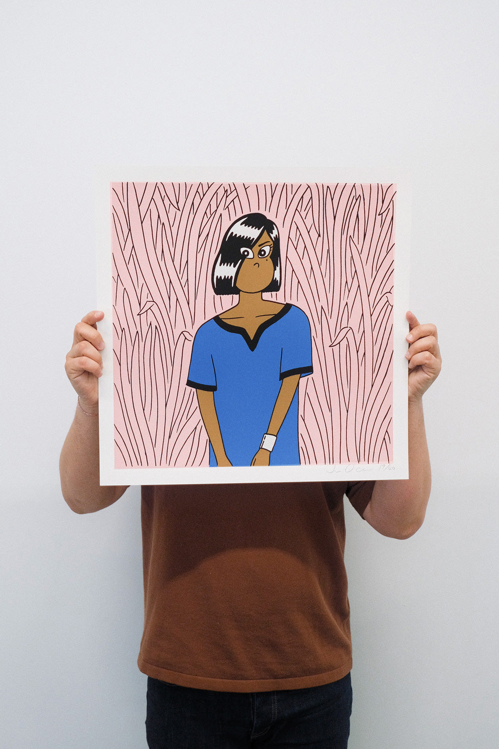 Life is wonderful when a good plan is to be just with yourself. Chosen solitude, they call it. And this is what the Japanese artist Jun Oson wants to talk about in this artwork, made in exlusively for Gunter Gallery. "She likes plants. She doesn't like people. She lives on a sparsely populated island". And we finish off: And behind her beauty hides a beautiful silence, collected, austere, and sometimes so necessary.